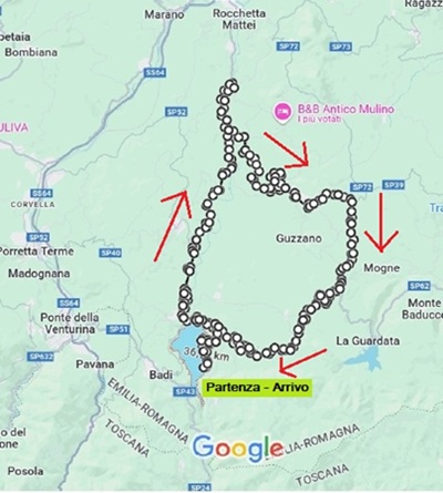 - h 11.30 – Ritrovo al lago di Suviana – Ristorante "La Spiaggetta" Località Piderla